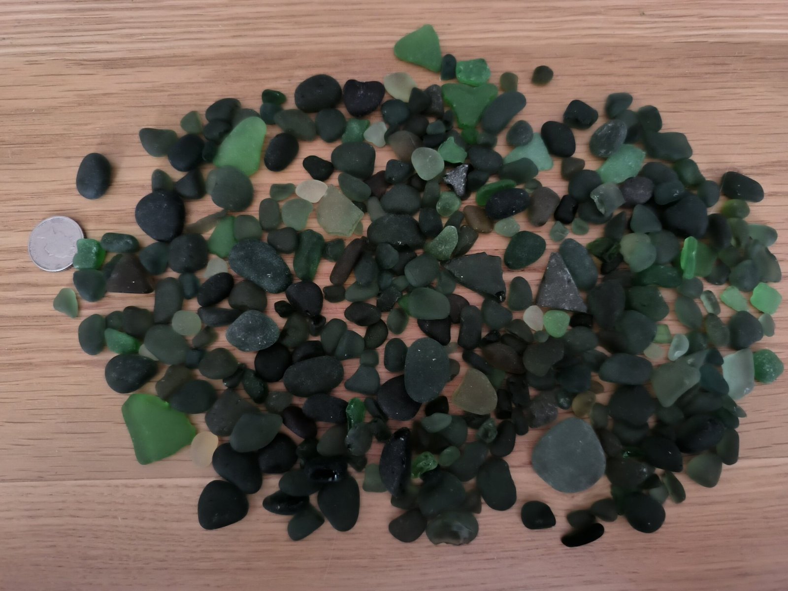 Green sea glass that has been sourced ourselves.
