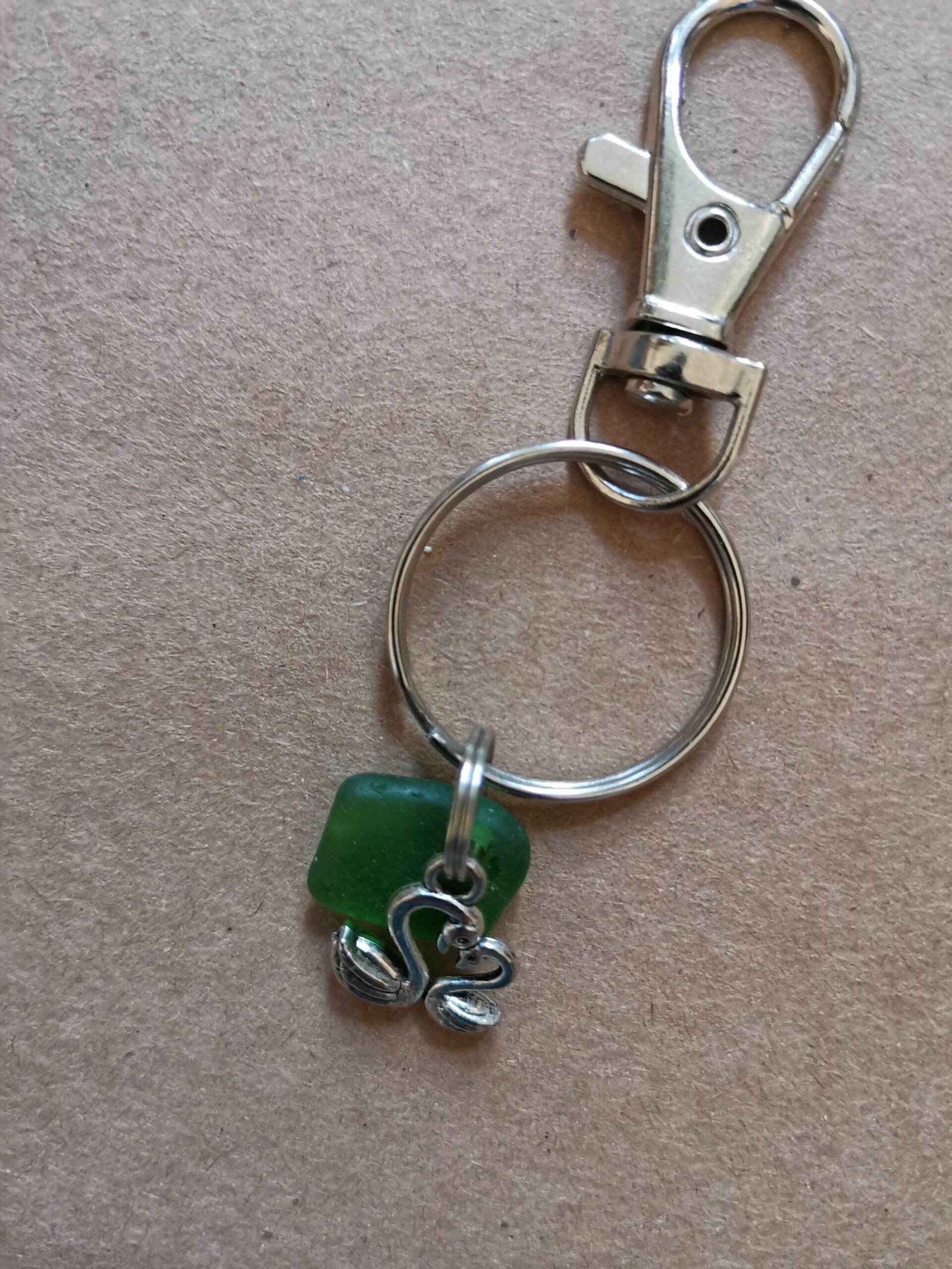 Sea glass collected by ourselves, also a charm added to make a keyring