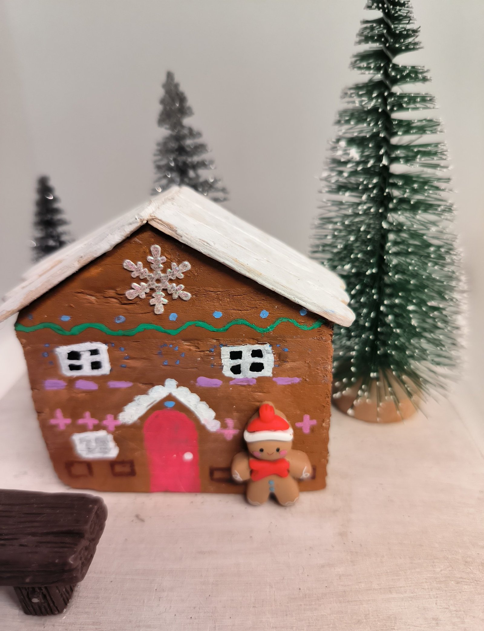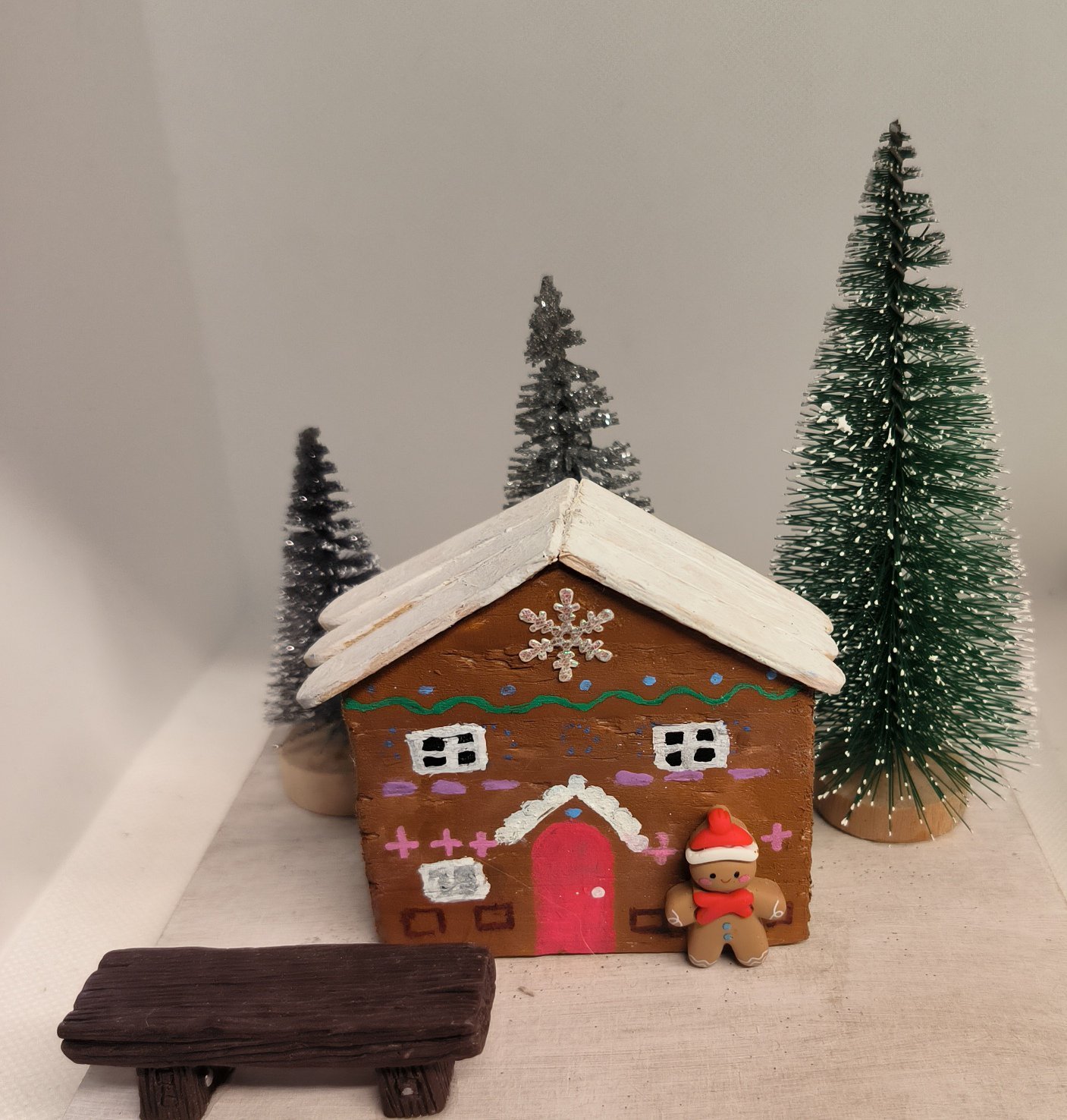 With sparkly trees, bench and man look adorable anywhere in the home .