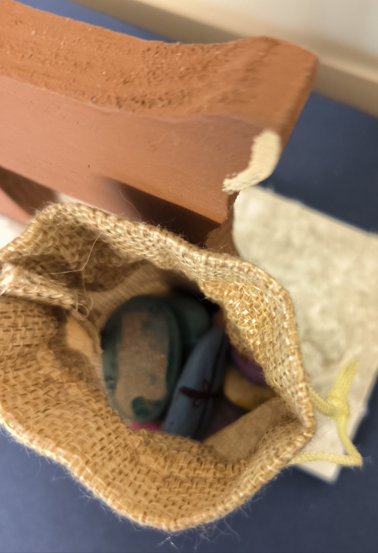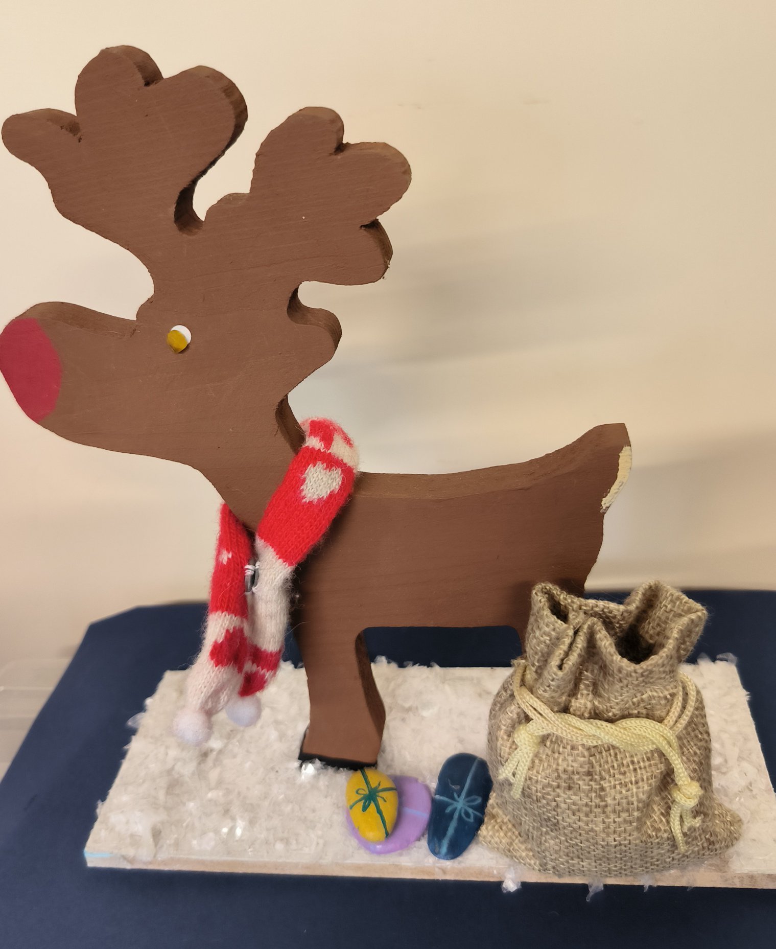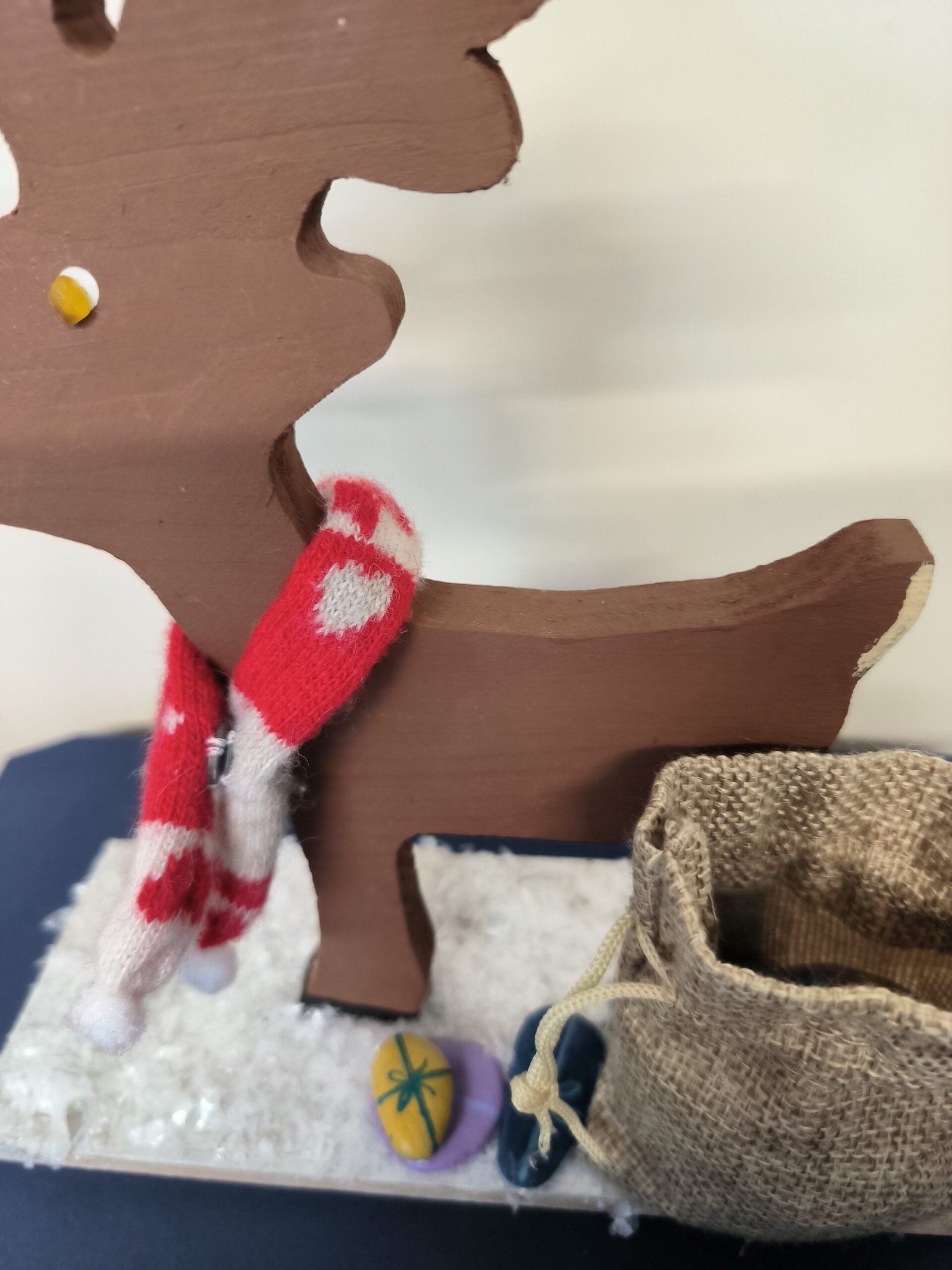 The reindeer and pebbles are all painted .Pebbles can be removed from the sack if you wanted.