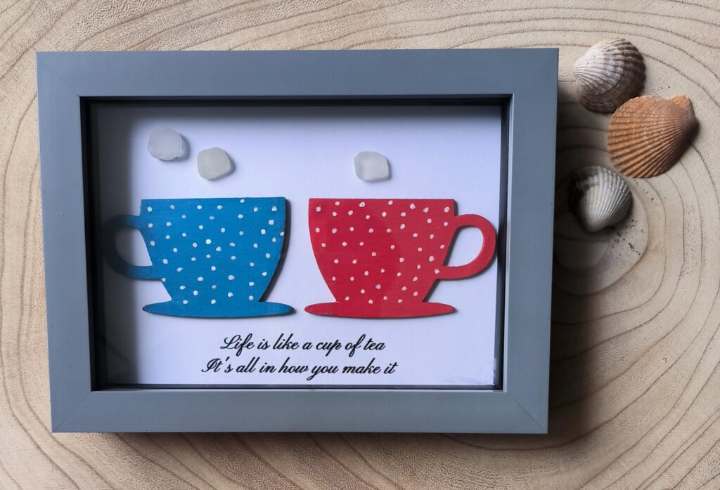 The result is our very own collection of nature inspired artwork. Crafted using items we’ve carefully collected ourselves from beaches where we live in Wales and many other UK sandy shores, then tenderly pieced together onto canvases ready to display in your home.